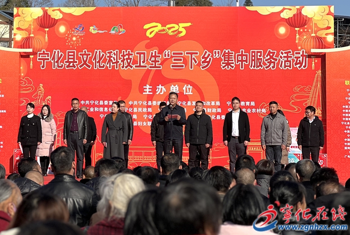 1月14日,2025年寧化縣文化科技衛生“三下鄉”集中服務活動在水茜鎮舉行??h委常委、宣傳部部長杜寶山,主辦、聯辦單位有關領導,水茜鎮黨委、政府領導出席啟動儀式。