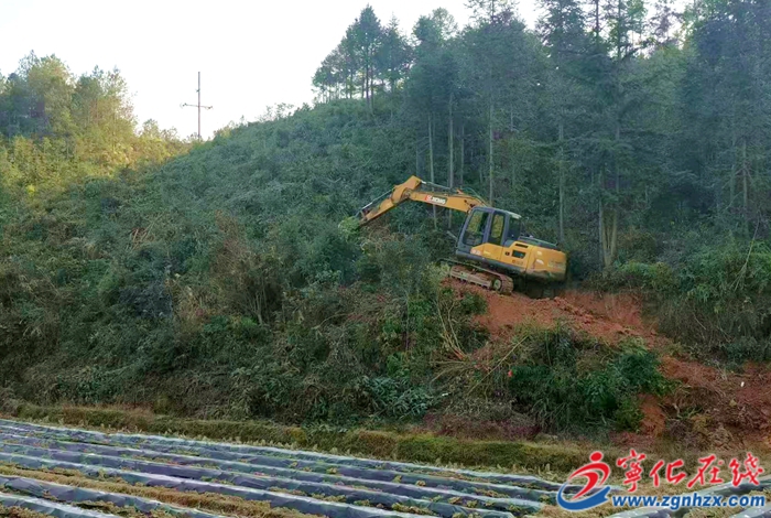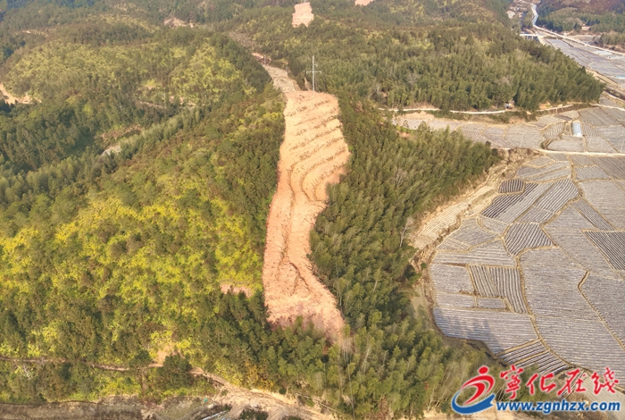 近日,在寧化縣濟村鄉武層村的高濟線施工現場,挖掘機正沿著輸電線路兩側清理林地,為電力走廊生物防火林帶項目打好基礎。