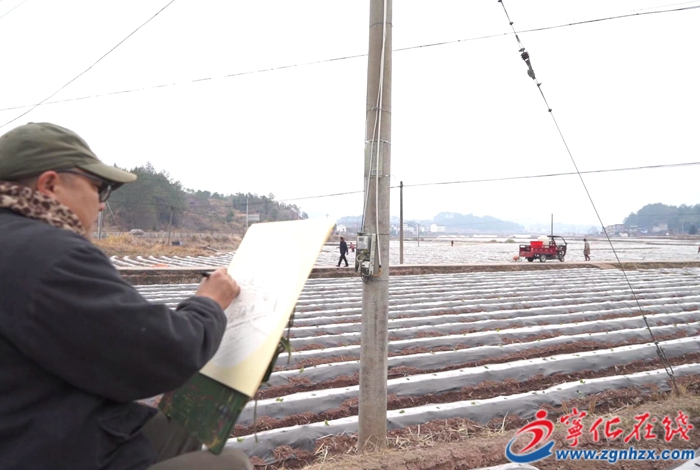 在石壁鎮(zhèn)江頭村,攝影家們深入田間地頭,用鏡頭捕捉村民、煙農(nóng)和煙技員在春耕生產(chǎn)一線的動人瞬間;畫家們則現(xiàn)場揮毫,為村民們畫速寫,生動描繪春耕場景;文藝志愿者們將精心準(zhǔn)備的“福”字、“春”字和速寫畫送到村民手中,為他們帶去關(guān)懷與溫暖。