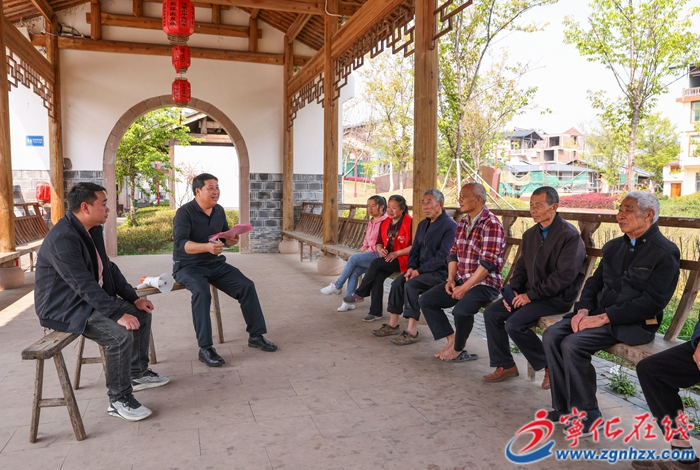 鳳凰山紅色聯村黨總支書記張族權正在給村民做防火宣傳