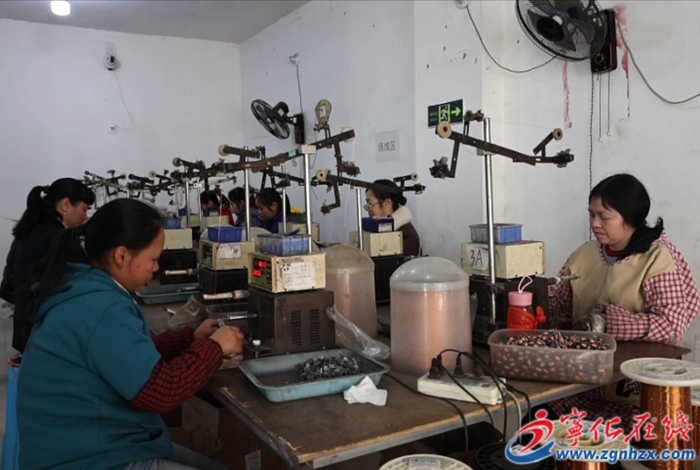 42歲的寶媽姜添財(cái)要照顧小孩,想要時(shí)間靈活、離家近、容易上手的崗位,于是服務(wù)站工作人員將她推薦到鑫暉電子元器件加工廠上班。