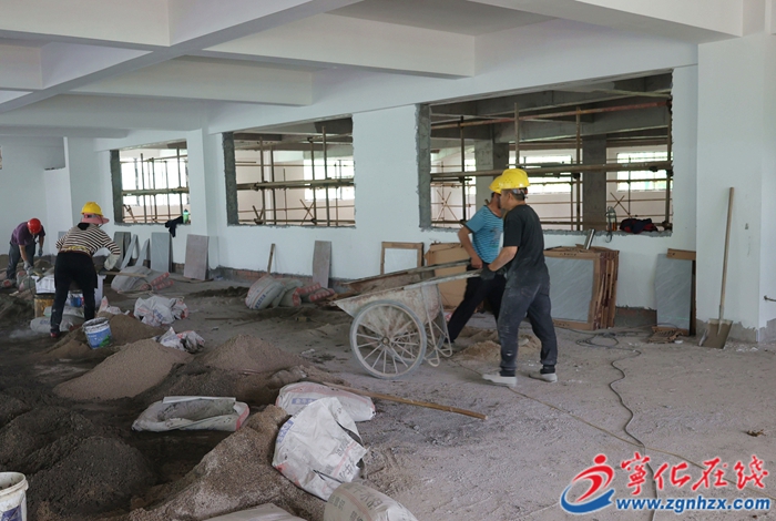 近日,在寧化縣閩臺青年創新創業交流中心項目建設現場,工人正在進行門窗安裝、地板鋪設等工作。
