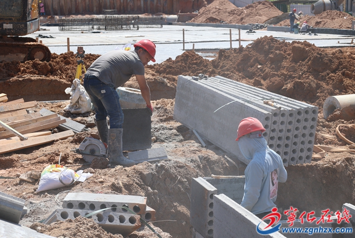 “當前工人們正進行1號教學樓地下室頂板鋼筋綁扎及半地下室大底板施工,計劃下一步完成地下室頂板及半地下室大底板的混凝土澆筑,預計明年6月全面竣工。”項目經理洪程介紹。