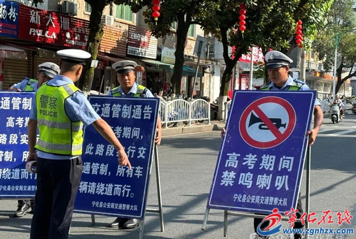 寧化縣公安部門現場設立了街面移動警務站,在考場外及各個重要路段安排執法人員現場執勤,維持秩序,考場上空,采用無人機高空監控技術保障考場秩序;在考點附近的道路上設置禁止鳴笛和交通管制標志,為廣大考生營造一個安全、祥和的考試環境;今年“愛心送考 情暖翠城”活動,全縣共投入公交車22輛、微公交車40輛、出租車25輛,免費為考生提供接送服務;三明市無線電管理局現場開啟信號干擾器,打擊無線電考試作弊,維護高考公平公正等。