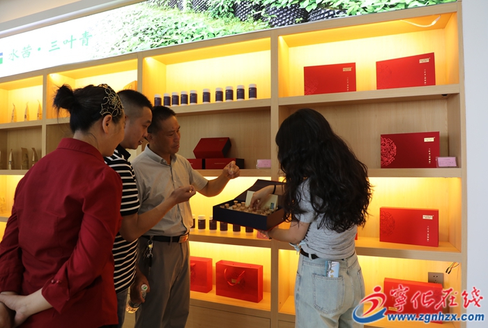 三葉青館里,青韻館、青味軒、青工坊人頭攢動,三葉青、靈芝茶、初生蛋等當地特色農產品琳瑯滿目。“三葉青有清熱解毒的功效,很適合夏天飲用。當地的三葉青很出名,這次特地買了些三葉青袋泡茶回去嘗嘗。”來自連城的游客邱小燕說。