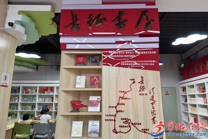 寧化長征書屋是全市首個紅色主題書店,由中共寧化縣委宣傳部指導設計,依托寧化新華書店升級打造,占地400多平方米。書屋設計以紅色文化為核心,巧妙融入中央紅軍長征出發地等標志性元素,設置紅色讀物、少兒讀物及客家讀物等專區,匯集百余種精選紅色經典及客家文化典籍,生動展示了長征精神、客家精神等寶貴精神財富。