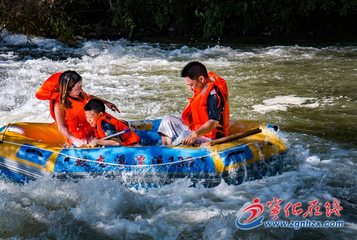 游客乘坐皮筏艇順流而下,時而沖進急流當中,濺起的水花迎面潑來,令人燥熱的暑氣瞬間消散;時而漂過平緩淺灘,伸手觸碰溪水,還可以看見游動的魚群。“每年夏天都盼著來這里漂流,享受激情和清涼!”江西游客李女士話音未落又被下一程激流帶起歡笑。
