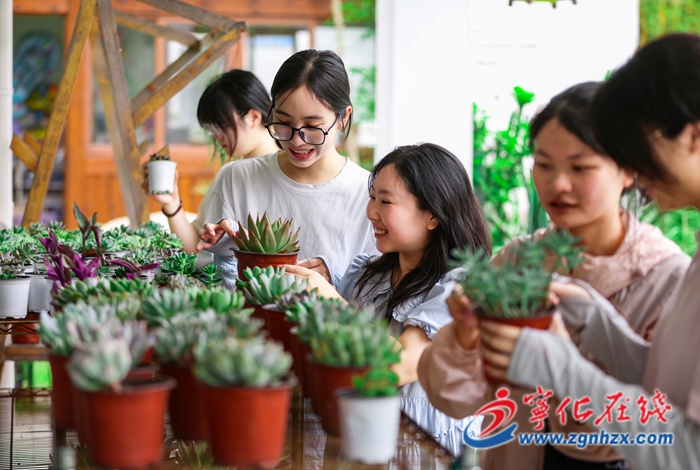 游客正在樂野小鎮內挑選多肉,黃尉峰攝.