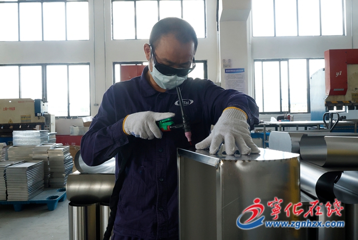 近日,記者走進(jìn)該公司的生產(chǎn)車(chē)間,機(jī)器運(yùn)轉(zhuǎn)的轟鳴聲此起彼伏,工人們正忙著進(jìn)行焊接、打磨、數(shù)碼激光切割、數(shù)控折彎、文字絲印等工作,一道道工序井然有序,現(xiàn)場(chǎng)一派繁忙的生產(chǎn)景象。