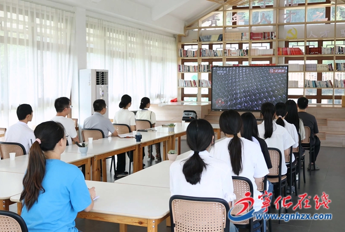 閱兵儀式上,整齊劃一的受閱方陣、先進精良的武器裝備、威武雄壯的空中梯隊依次亮相,青年干部們全神貫注,目不轉睛地盯著屏幕。