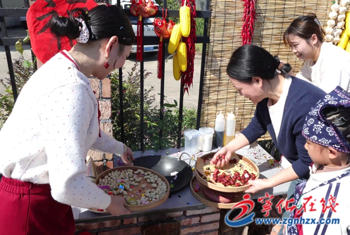 活動現場,各班級為開灶活動精心準備了別具特色的“賀禮”,用創意與心意點燃了開灶儀式的氛圍。在老師和縣小吃協會工作人員指導下,孩子們化身“小小廚師”,有序參與食材處理,制作春卷、松丸子等客家美食,體驗客家擂茶的制作。