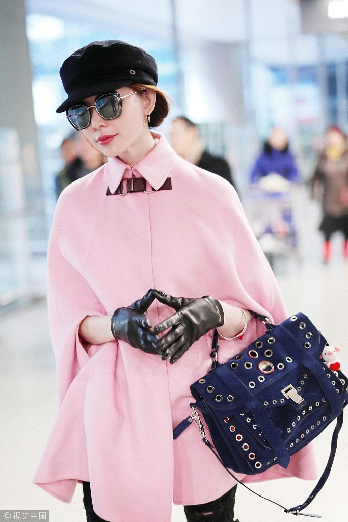2018年1月10日,上海,林志玲現(xiàn)身機(jī)場。 林志玲穿粉嫩斗篷裝美得冒泡。