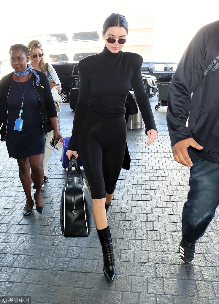 當地時間2018年1月12日,洛杉磯,肯達爾·詹娜展超模氣場,邁“筷子腿”大步流星(Kendall Jenner)現身機場。