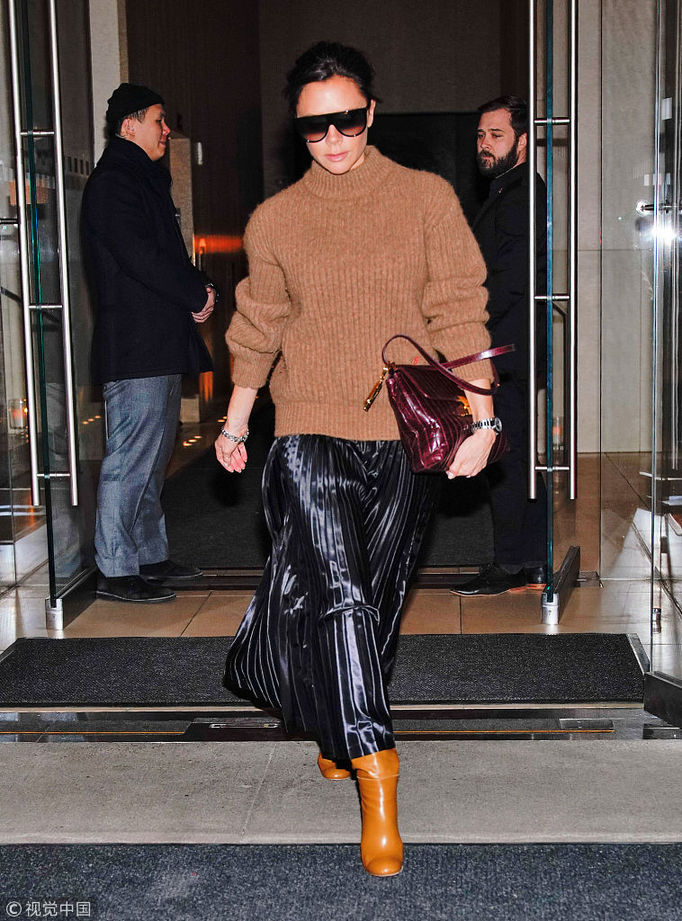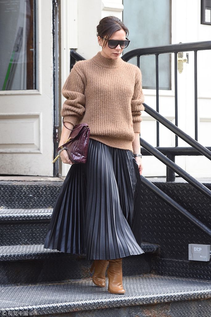 維多利亞黑色百褶裙 穿毛衣走出T臺(tái)范兒