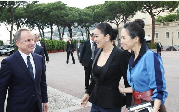 2014年,章子怡和鞏俐一同現身摩納哥觀看LV早春大秀,章子怡的撞色高腰小外套設計感十足,鞏俐的黑色小西裝干練大氣。兩代謀女郎同框,章子怡的右手自然放在鞏俐腰間,足見姐妹親密。