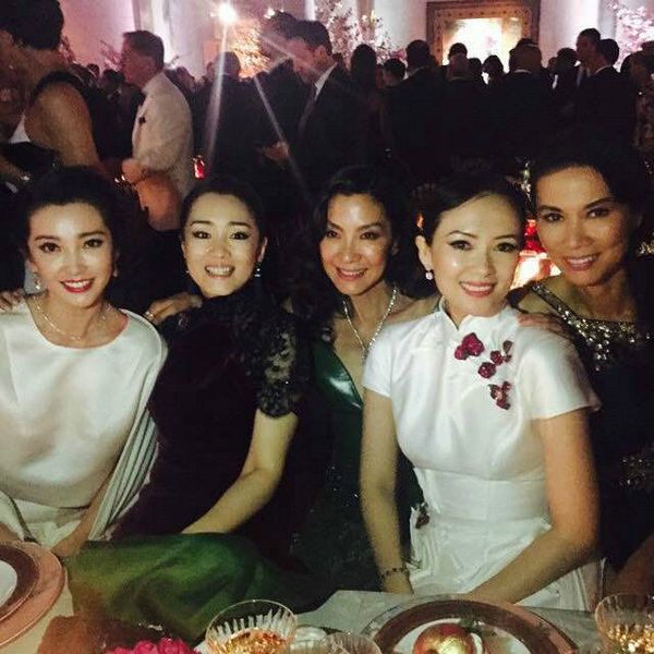 2015年,鞏俐作為“時尚界奧斯卡”——Met Ball紐約大都會藝術博物館慈善舞會的聯合主席,主持了這場名為“中國:鏡花水月”的活動,眾多華人女星驚艷亮相,章子怡、鞏俐再度同框。章子怡的白色繡花中式旗袍裙和鞏俐的酒紅色絲絨刺繡旗袍裙,古典韻味十足,盡顯東方特色。
