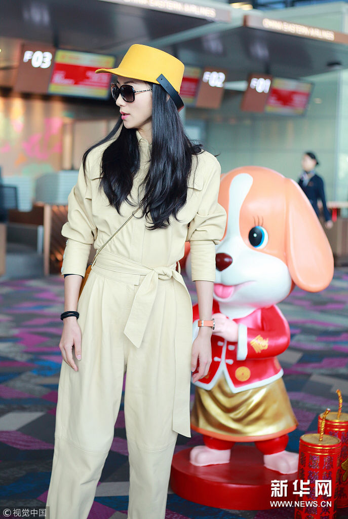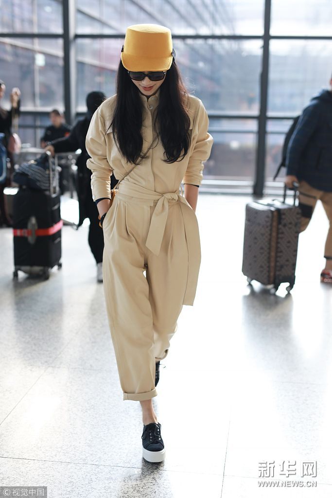 2018年3月10日,上海,韓雪現(xiàn)身機(jī)場,穿米色連體服為早春增添活力。