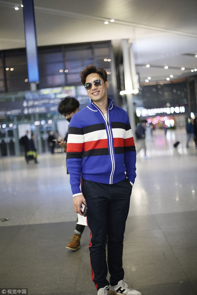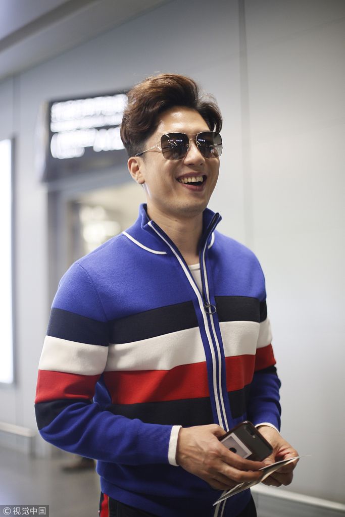 上海,凌瀟肅現(xiàn)身機(jī)場(chǎng),穿條紋運(yùn)動(dòng)裝 墨鏡遮面難掩好心情。