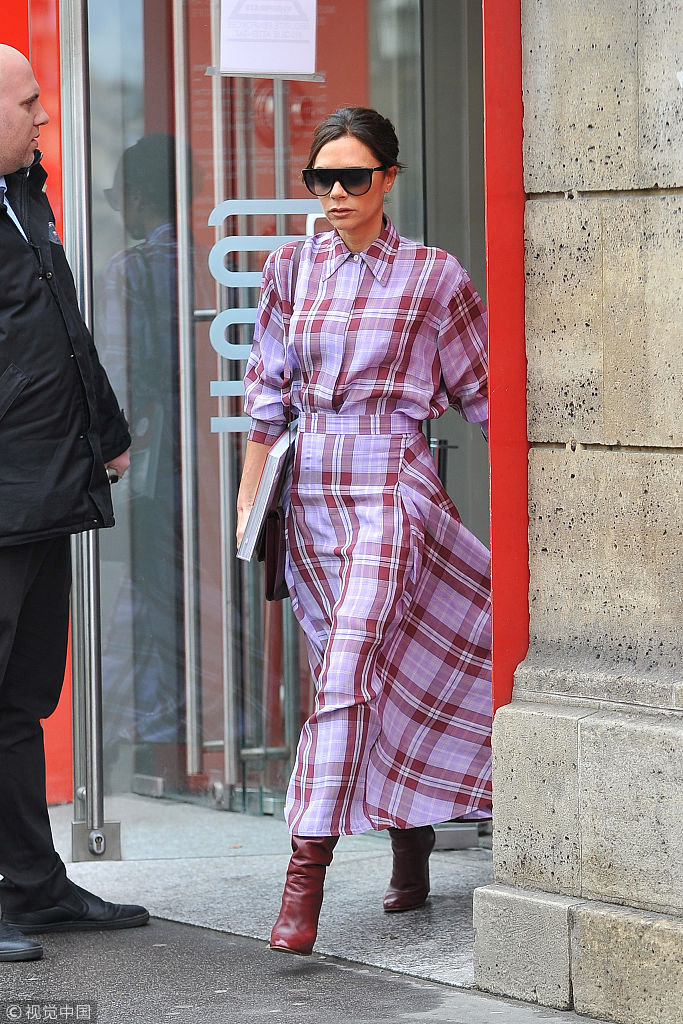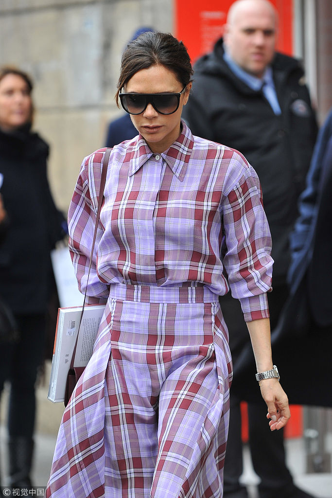 當(dāng)?shù)貢r(shí)間2018年3月28日,巴黎,貝嫂維多利亞·貝克漢姆(Victoria Beckham)現(xiàn)身參觀比利時(shí)著名時(shí)裝設(shè)計(jì)的作品展,格子裙配小紅鞋夠青春。
