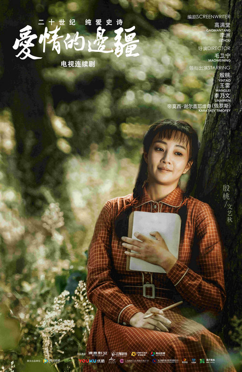 當然,這段凄美的愛情故事,從甜美、純愛開始。海報中,殷桃眉眼甜蜜,手執鉛筆與畫冊,似乎要將心中所有的思念與愛念都匯于筆尖、留在紙上。而她靠在樹邊,身邊開滿了小花,又恰到好處地暗示了文藝秋這位絕對的大女主所處的純美環境,加上殷桃純美氣質的映襯,讓人不禁產生對那個遠離的純真年代的無限感懷之情。