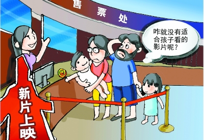 影院如今放映的新片除了動畫片,真人兒童片十分罕見。漫畫/王鵬