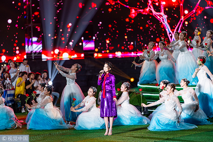 7月2日,《最佳時(shí)刻——2018世界杯燃情之夜》在CCTV3播出,黃圣依助陣世界杯,演唱了代表作《天音》和由她親自創(chuàng)作的新歌《自己的幸福》。黃圣依以嫵媚紫裙和清爽短發(fā)現(xiàn)身,令人眼前一亮。她用甜美的歌喉和動(dòng)情的演繹打動(dòng)了現(xiàn)場觀眾,贏得了陣陣喝彩。