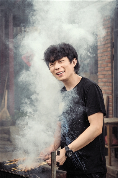 T恤是從工作室角落里隨手抽出來穿上的,夾腳拖是胡同口超市里最基礎(chǔ)的款式,而沒有任何修飾的面龐上,還殘留著凌晨四點錄完音的熬夜痕跡——當(dāng)這樣的北京孩子趙雷站在烤爐前,汗流浹背地翻動著羊肉串兒、揮灑著辣椒面兒時,有一瞬間,你很難與舞臺上那個抱著吉他歌唱的他重疊在一起。但他手一揮,毫不在意,“在我這兒,沒那么多規(guī)矩啊。”
