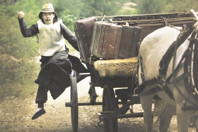 葛優在《讓子彈飛》中演繹了夸張的、卡通式的丑角形象馬邦德。
