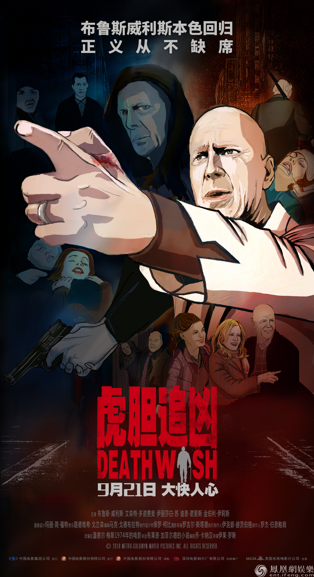 由美國米高梅影片公司出品的動作犯罪電影《虎膽追兇》于今日發布了美漫版海報和劇情預告片。該片由伊萊·羅斯指導,講述了“虎膽”英雄布魯斯·威利斯在家人慘遭暴力侵害后奮起復仇、懲奸除惡的故事。海報整體風格左冷右暖,雙面人格的布魯斯·威利斯位于中央,“天使”在前,“死神”在后,在其他角色場景的襯托下集結成一座“修羅塔”。劇情版預告片則更多地展現了主人公保羅人格“扭轉”的關鍵成因。該片已定于9月21日全國公映。