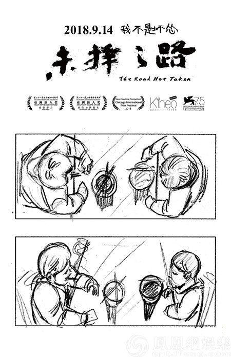 在電影的創(chuàng)作、拍攝過程中,分鏡頭的拍攝、畫面的精致、故事的完整等,均需要幕后團隊仔細斟酌。電影《未擇之路》的創(chuàng)作過程亦是如此,這點從該片今日全新曝光的一組分鏡圖中便可見得。流暢的線條將二勇和尕娃小攤上吃飯,二勇和小眉卡車邊的初遇,以及三人路邊吃瓜的場景細細勾勒而出,三個主要的人物形象也展現(xiàn)出了各自的特征,呈現(xiàn)出良好的畫面效果。而據導演唐高鵬此前透露,影片在創(chuàng)作中繪制了2100多張分鏡圖,且在拍攝過程中不斷調整構圖、光影等,嚴謹?shù)膽B(tài)度可見一斑,同時也讓觀眾對該片期待值大增。