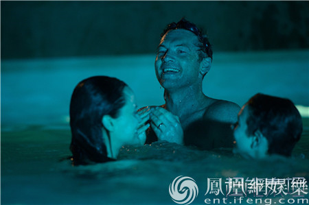《超能泰坦》里克(薩姆·沃辛頓飾)一家人泳池嬉鬧