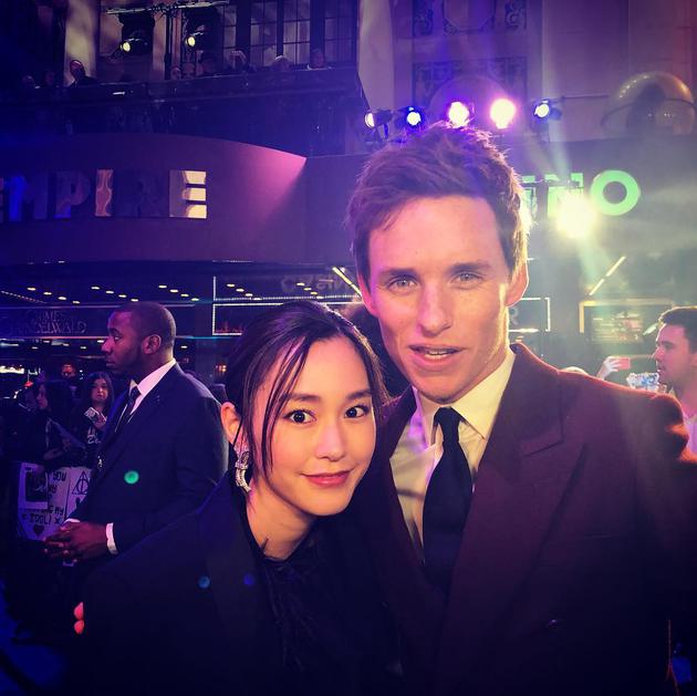 桐谷美玲配文道:“在《神奇動物:格林德沃之罪》的倫敦首映禮上與扮演紐特的埃迪合影了,非常榮幸。”