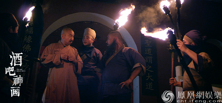 不過(guò)電影《酒吧神畫》不僅僅是傳說(shuō)故事的延續(xù)那么簡(jiǎn)單。制作團(tuán)隊(duì)對(duì)杜皮與賀童重返古代的設(shè)定進(jìn)行了更大的升級(jí)。隋末唐初的戰(zhàn)亂動(dòng)蕩年代,為冒險(xiǎn)探寶增加了不確定性。佛門凈地反其道而用之,清凈之地變成各方爭(zhēng)奪絕世寶畫俗世之所,以此同時(shí)圓通與方丈辯才勇離心離德,覬覦師傅的家傳《蘭亭帖》。杜皮與賀童突然闖入寺廟,打亂了圓通的如意算盤,誤以為二人是奔著《蘭亭帖》而來(lái)。圓通使盡各種辦法阻止杜賀二人留宿寺院都未奏效,只能勾結(jié)官府衙役以逮捕杜賀二人。圓通千算萬(wàn)算沒(méi)料到,與自己一伙的綁匪半路上解救了杜賀二人,并發(fā)現(xiàn)了《蘭亭帖》的秘密,想玩無(wú)間道的圓通自食惡果,反受其害。各種各樣的巧合貫穿古代探寶的經(jīng)歷,現(xiàn)世尋寶有意而為之卻未能如愿,陰差陽(yáng)錯(cuò)來(lái)到古代卻機(jī)緣巧合獲得無(wú)價(jià)之寶,以古畫透析當(dāng)代社會(huì),頗有荒誕喜劇的味道。有網(wǎng)友說(shuō)“圓通聰明反被聰明誤,杜皮傻人有傻福,被他倆逗死啦”。看似荒誕的事情,細(xì)思有些真實(shí)共鳴,現(xiàn)世尋寶的杜皮與古寺的圓通對(duì)財(cái)富寶物近乎飛蛾撲火似得執(zhí)念是拼盡全力的搏命一擊,無(wú)非雞飛蛋打一地雞毛。有爆笑情節(jié),也有會(huì)心一笑的沉思,《酒吧神畫》優(yōu)酷熱映,千萬(wàn)不要錯(cuò)過(guò)呦!