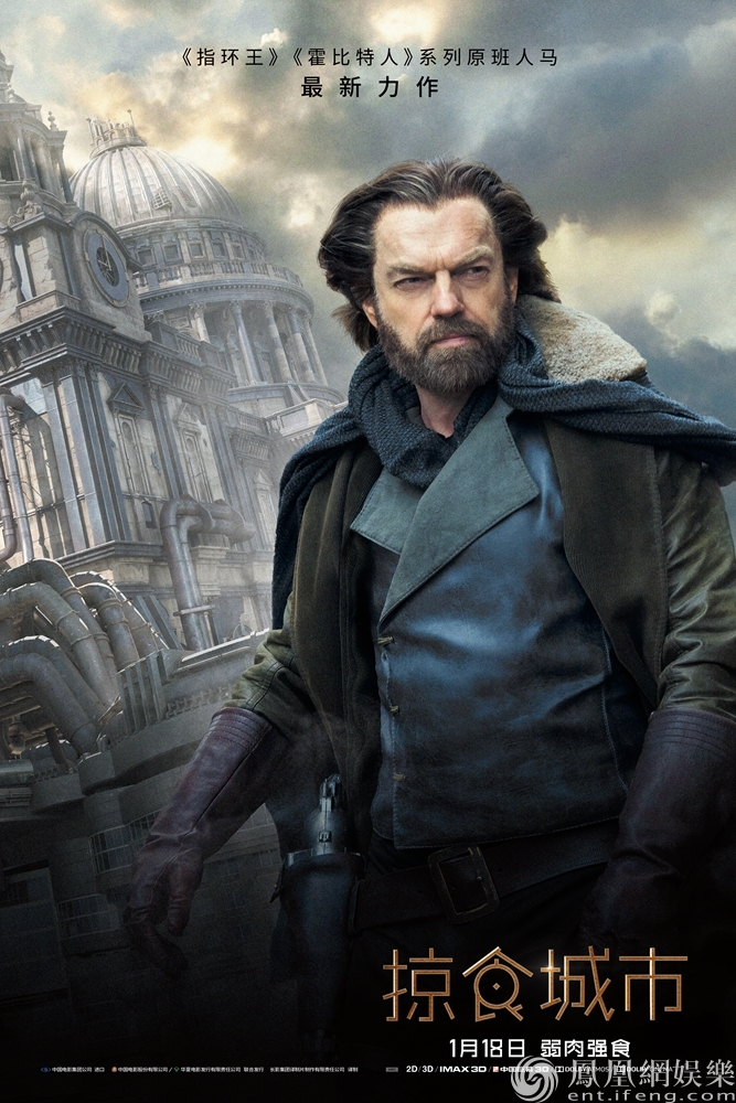為了塑造瓦倫丁這一豐富立體的梟雄角色,《掠食城市》幕后團隊找到了他們熟悉的老朋友,曾在彼得·杰克遜執導的《霍比特人》和《指環王》三部曲中飾演林谷精靈領主的雨果·維文。在過去的演藝生涯中他獲獎無數履歷豐富,三次榮膺澳大利亞電影學院最佳男演員獎,曾在《黑客帝國》中飾演了史密斯干員,更曾為《變形金剛》系列電影中的威震天配音。2011年,雨果·維文飾演了電影《美國隊長》的反派“紅骷髏”,并在電影《云圖》中一人飾演了六個角色。而此次他在片中的精彩表現同樣令人十分期待。