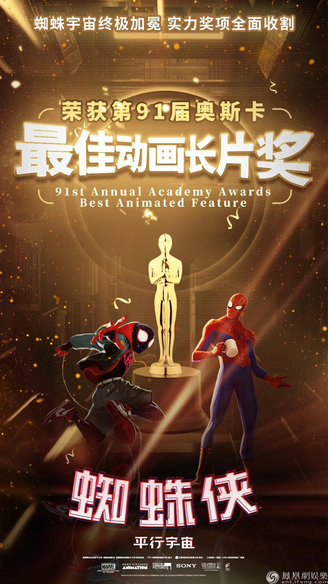 在今年第91屆奧斯卡金像獎上,索尼影業(yè)再續(xù)輝煌,不僅有多種類型影片入圍提名,而且勇奪兩項大獎。其中由美國哥倫比亞影片公司、美國漫威公司和美國索尼動畫影片公司聯(lián)合出品的動畫電影《蜘蛛俠:平行宇宙》毫無懸念地摘得最佳動畫長片獎項,由美國索尼國際影片發(fā)行公司發(fā)行的《假若比爾街能說話》拿下最佳女配角大獎。除了這兩部獲獎作品,索尼影業(yè)還有《賢妻》、《無主之作》幾部類型多元的作品獲得本屆奧斯卡提名,成績十分亮眼。