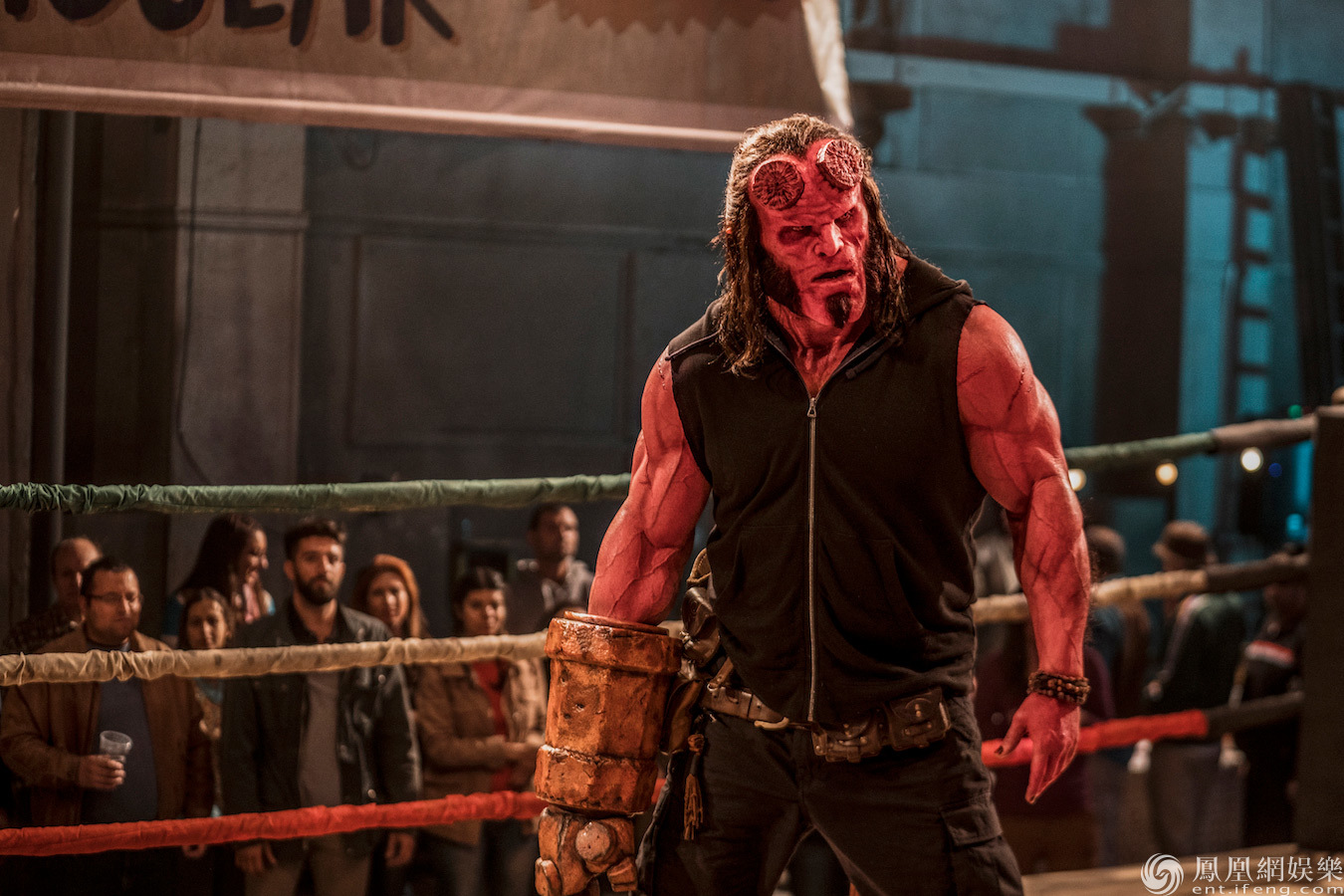 這張劇照中穿著黑色背心的地獄男爵真是秀了一把好身材,一身結(jié)實(shí)的肌肉配上紅色的皮膚非常威武英俊!