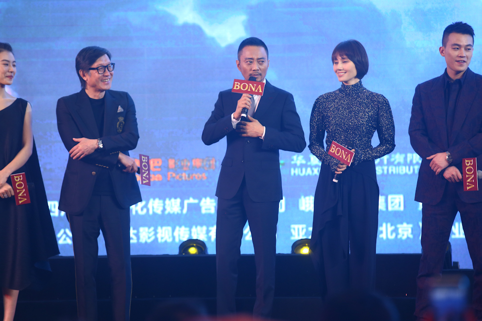 監(jiān)制導(dǎo)演黃建新表示,做這樣的電影首先都有一顆敬畏之心,“偉人的魅力、歷史的魅力以及電影的魅力推動著我們,讓我們完成了這個創(chuàng)作任務(wù)。電影里這些共和國的創(chuàng)造者展現(xiàn)出的豐富的情感,還有普通戰(zhàn)士們的奉獻和犧牲,這兩部分構(gòu)成了一個精神世界。這個精神世界就是我們中國的根,我們中國的驕傲。”現(xiàn)場黃景瑜成了前輩演員們的重點表揚對象,劉勁稱贊其不拍戲的時候也穿著軍裝、軍帽,只為找到角色的感覺;黃建新也透露黃景瑜高燒39度還在堅持拍戲,“有這樣敬業(yè)的年輕人,中國電影沒問題。”