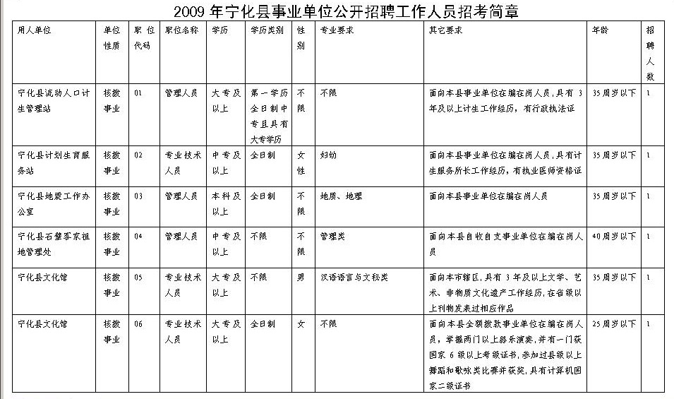 2009年寧化縣事業(yè)單位公開招聘工作人員招考簡章