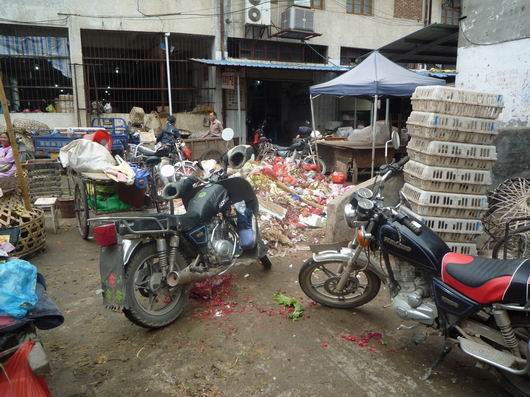 9、上圖示:農(nóng)貿(mào)市場內(nèi)垃圾成堆