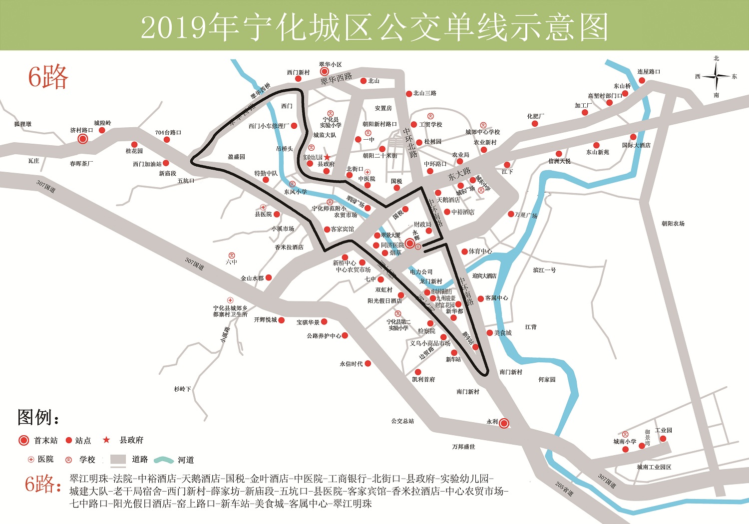 翠江明珠—新車站—老車站—縣醫院—縣政府—中環路—翠江明珠(環線公交)