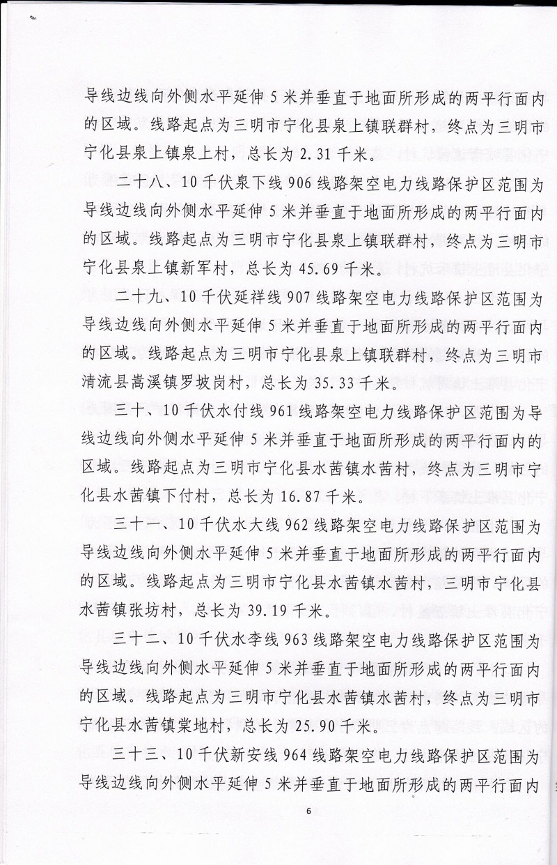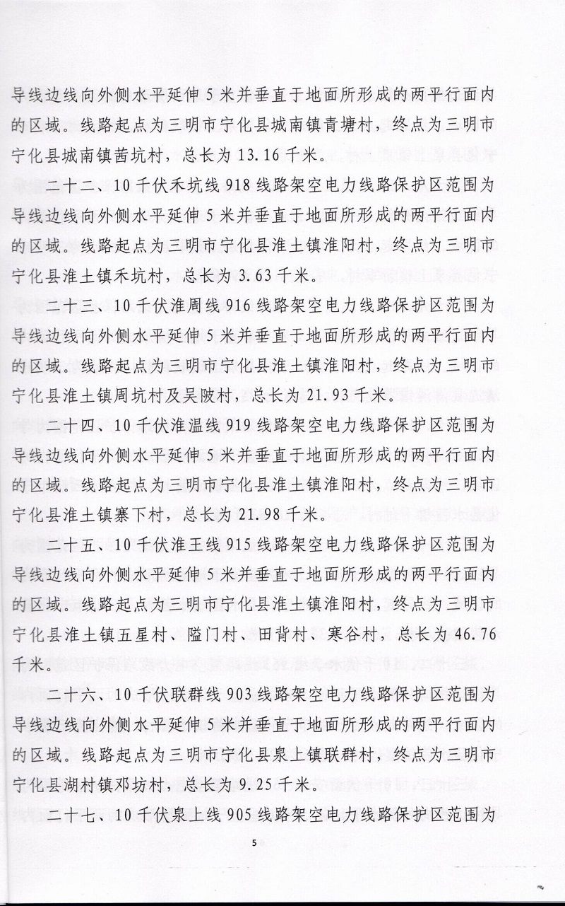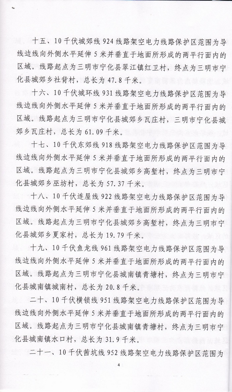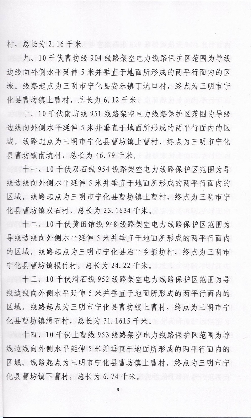 寧化縣工業和信息化局關于10千伏安樂線等43條架空電力線路保護區劃定的批復
