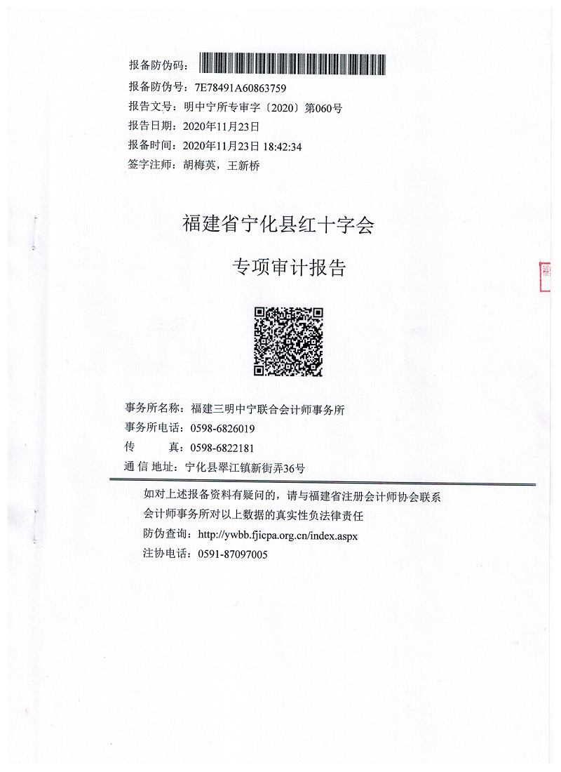 福建省寧化縣紅十字會本級新型冠狀病毒肺炎疫情防控社會捐贈款物收支情況審計報告