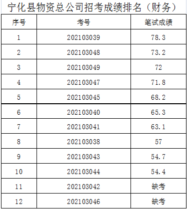 寧化縣物資總公司關于2021年公開招聘企業工作人員筆試成績公示