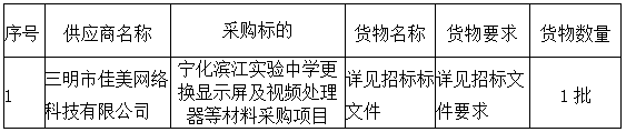 寧化濱江實驗中學更換顯示屏及視頻處理器等材料采購項目 成交公告