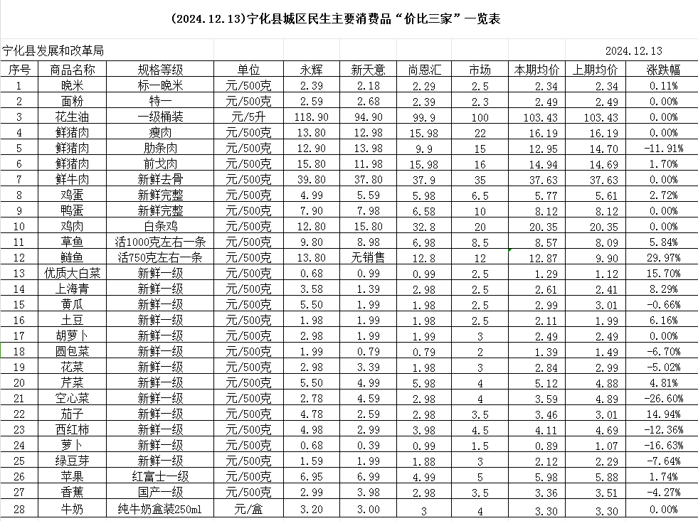 (2024.12.13)寧化縣城區民生主要消費品“價比三家”一覽表