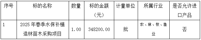 1.項目名稱:2025年春季水保補植造林苗木采購項目