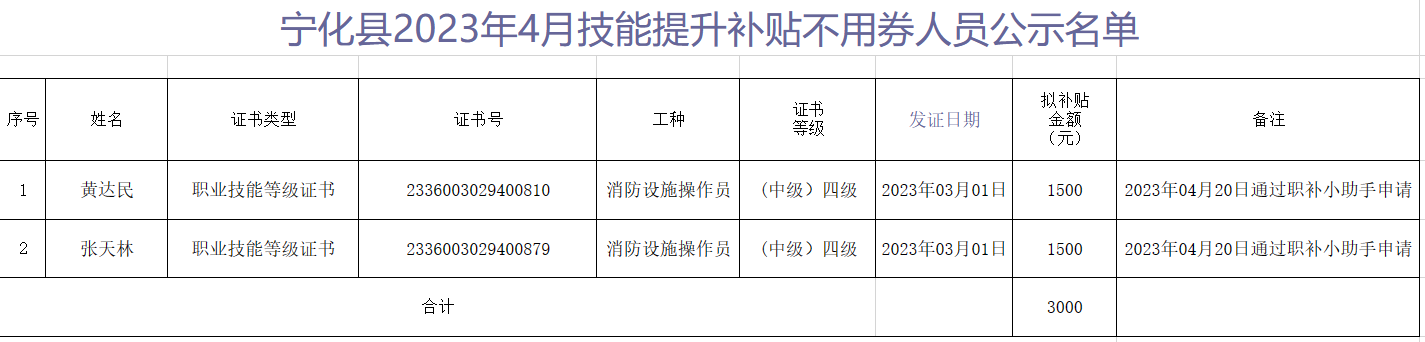 附件:寧化縣2023年4月技能提升補貼不用券人員公示名單