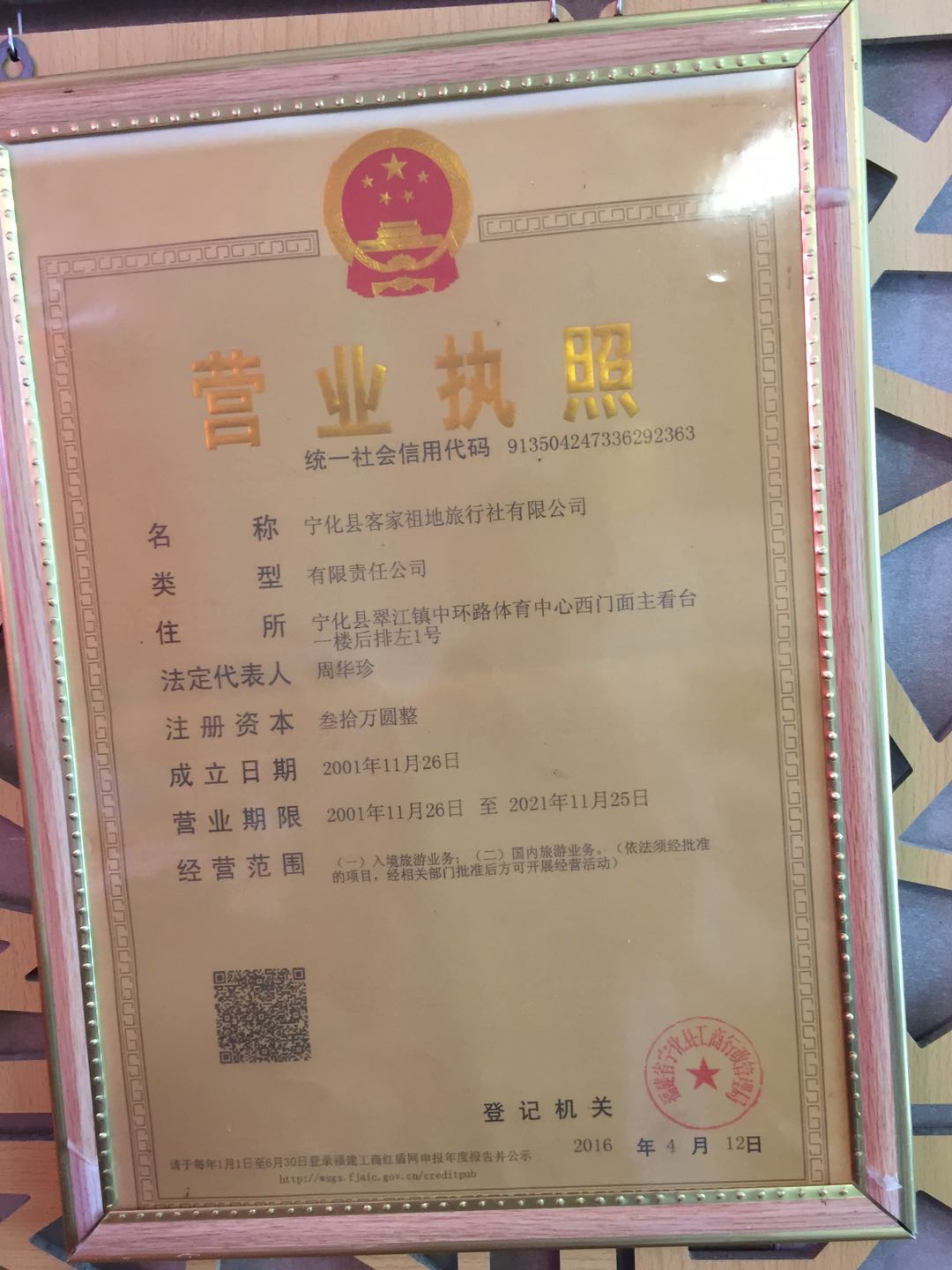 自2001-11-26寧化縣客家祖地旅行社有限公司注冊(cè)以來(lái),寧化縣客家祖地旅行社有限公司一直秉承“誠(chéng)信、專業(yè)”的經(jīng)營(yíng)理念,堅(jiān)持用戶至上、質(zhì)量第一,服務(wù)了一批又一批的客戶。公司以豐富的商業(yè)服務(wù)經(jīng)驗(yàn),為您提供的商業(yè)服務(wù)。選擇我們就是選擇誠(chéng)信,我司寧化縣客家祖地旅行社有限公司隨時(shí)期待您的電話。