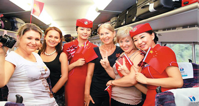 外國(guó)游客乘坐中國(guó)高鐵