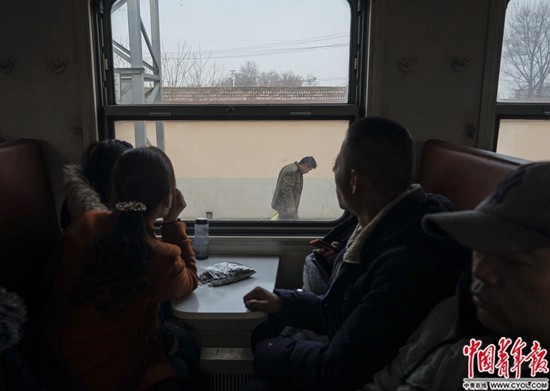 1月20日,從西安開往榆林的7006次客車停靠在洛川站。附近鄉(xiāng)鎮(zhèn)的許多果農經常乘火車去“蘋果之鄉(xiāng)”洛川的果園干活。